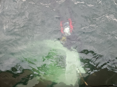 In Absprache mit den vor Ort befindlichen Feuerwehr- und Polizeikräften wurde die Bootsbergung gemeinsam eingeleitet. Hierzu wurden am Segelboot durch DLRG Einsatztaucher weitere Sicherungsleinen angebracht. Die noch aufgespannten Segel wurden unter Wasser schadfrei eingerollt und der Baum wurde mittig gegen umherpendeln gesichert. Am Segelmast wurden durch die Einsatztaucher Hebezeuge angebracht und das Segelboot wurde mit dem Kran des Feuerlöschbootes langsam angehoben. Nach dem das Segelboot die Wasseroberfläche erreicht hat, wurde mit einer Tauchpumpe das innenliegende Wasser ausgepumpt. Im Anschluss wurde das wieder eigenständig schwimmende Segelboot durch Feuerwehr und DLRG in einen Hafen geschleppt.